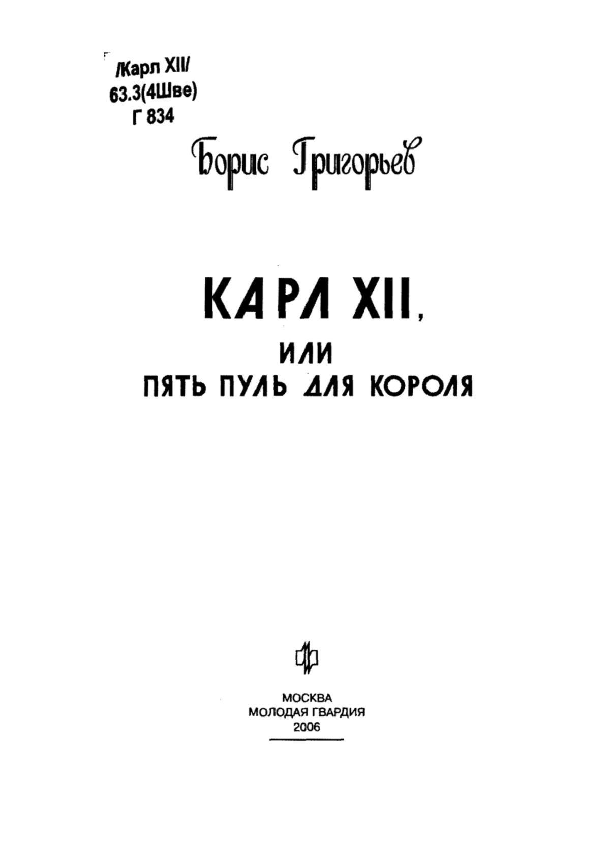 Г 83 Карл XII, или Пять пуль для короля. — М.: Молодая гвардия, 2006. — 550[10] с.: ил. — (Жизнь замечат. людей: Сер. биогр.; Вып. 998).