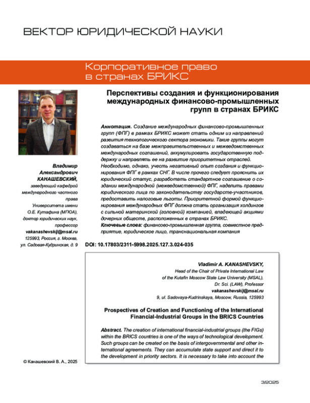 Статья: Перспективы создания и функционирования международных финансово-промышленных групп в странах БРИКС