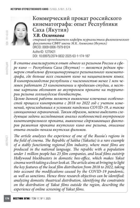 Статья: Коммерческий прокат российского кинематографа: опыт Республики Саха (Якутия)