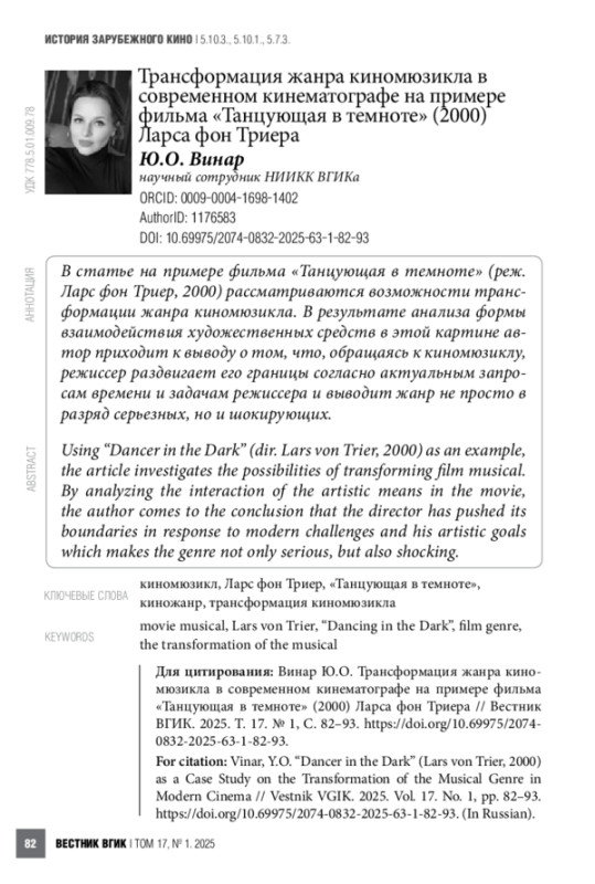 Статья: Трансформация жанра киномюзикла в современном кинематографе на примере фильма «Танцующая в темноте» (2000) Ларса фон Триера