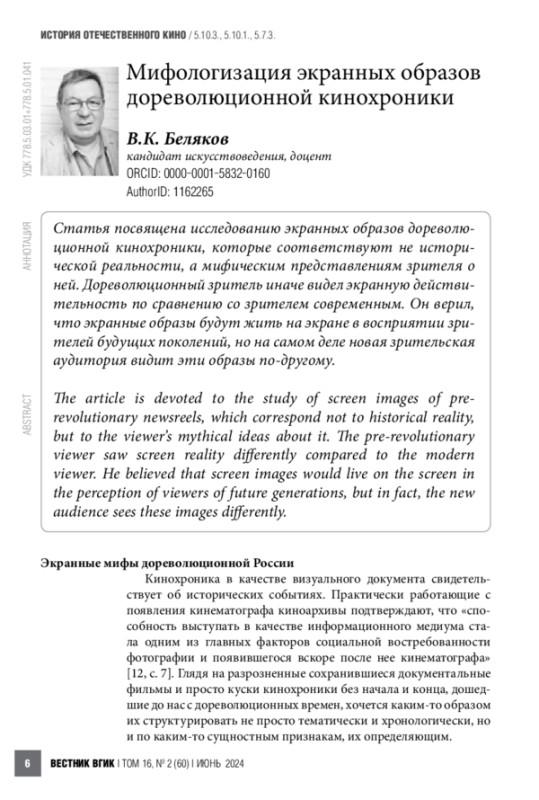 Статья: Мифологизация экранных образов дореволюционной кинохроники
