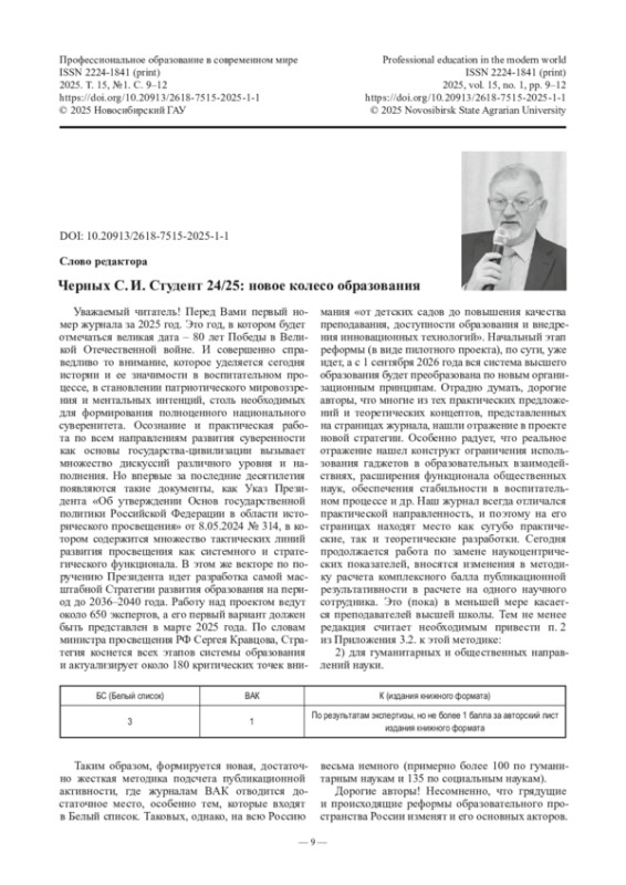 Слово редактора. Вступление к выпуску Т. 15, № 1 журнала “Профессиональное образование в современном мире”