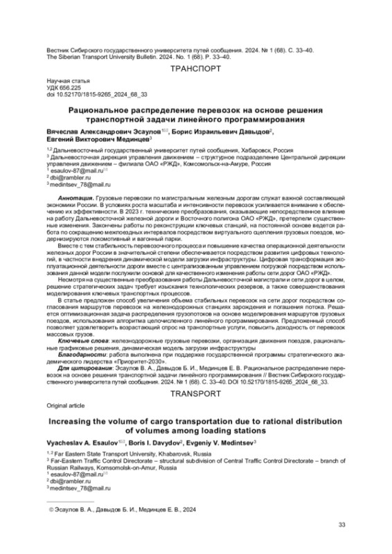 Грузовые перевозки по магистральным железным дорогам служат важной составляющей экономики России. В условиях роста масштаба и интенсивности перевозок усиливается внимание к обеспечению их эффективности. В 2023 г. технические преобразования, оказывающие непосредственное влияние на работу Дальневосточной железной дороги и Восточного полигона ОАО «РЖД», претерпели существенные изменения. Закончены работы по реконструкции ключевых станций, на постоянной основе ведется работа по сокращению межпоездных интервалов посредством виртуального сцепления грузовых поездов, модернизируются локомотивный и вагонный парки.