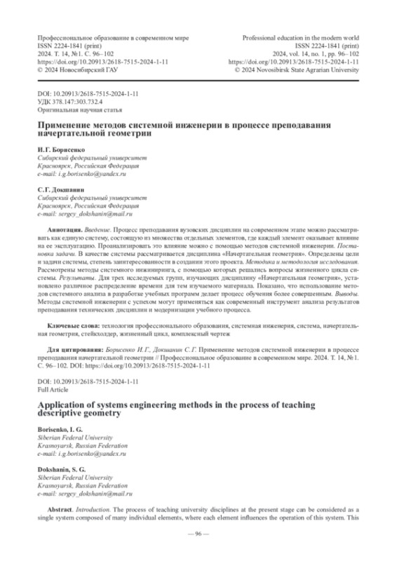 Статья: Применение методов системной инженерии в процессе преподавания начертательной геометрии