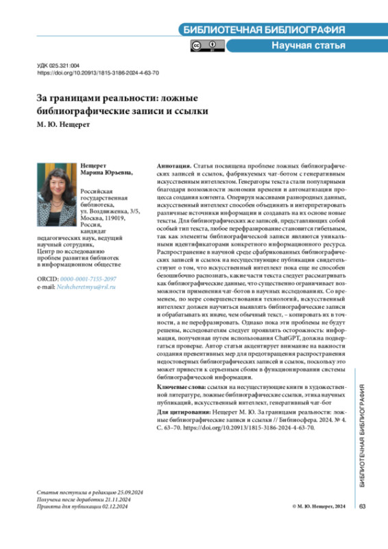 Статья: За границами реальности: ложные библиографические записи и ссылки