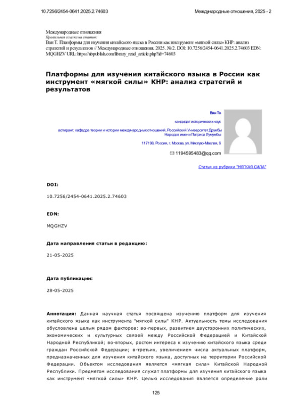 Статья: Платформы для изучения китайского языка в России как инструмент «мягкой силы» КНР: анализ стратегий и результатов