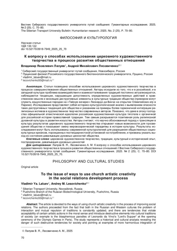 - ВЕСТНИК СИБИРСКОГО ГОСУДАРСТВЕННОГО УНИВЕРСИТЕТА ПУТЕЙ СООБЩЕНИЯ: ГУМАНИТАРНЫЕ ИССЛЕДОВАНИЯ