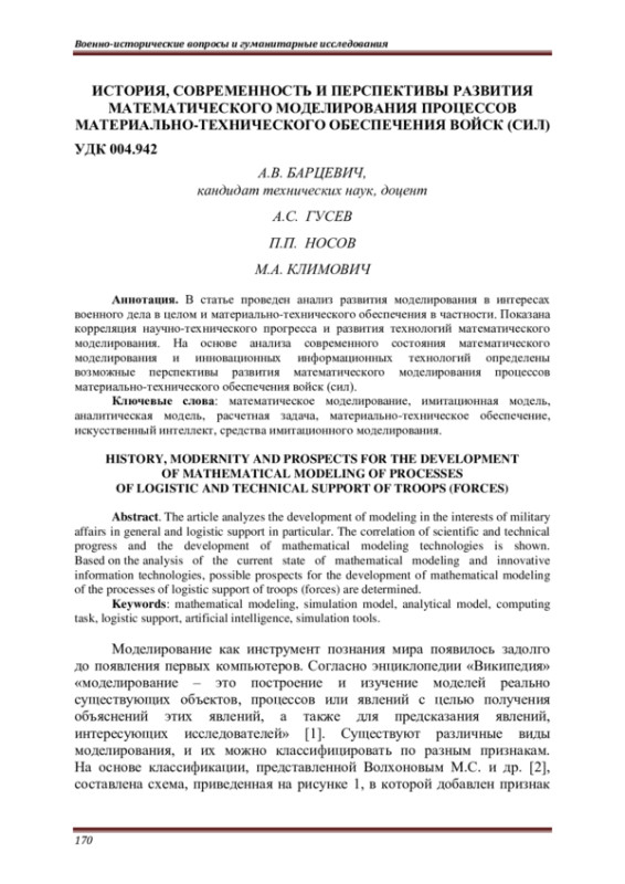 Статья: ИСТОРИЯ, СОВРЕМЕННОСТЬ И ПЕРСПЕКТИВЫ РАЗВИТИЯ МАТЕМАТИЧЕСКОГО МОДЕЛИРОВАНИЯ ПРОЦЕССОВ МАТЕРИАЛЬНО-ТЕХНИЧЕСКОГО ОБЕСПЕЧЕНИЯ ВОЙСК (СИЛ)