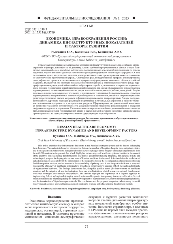 Статья: ЭКОНОМИКА ЗДРАВООХРАНЕНИЯ РОССИИ: ДИНАМИКА ИНФРАСТРУКТУРНЫХ ПОКАЗАТЕЛЕЙ И ФАКТОРЫ РАЗВИТИЯ
