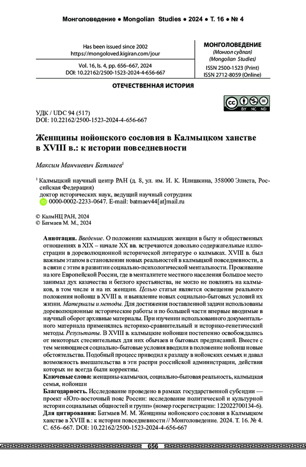 Статья: Женщины нойонского сословия в Калмыцком ханстве в XVIII в.: к истории повседневности