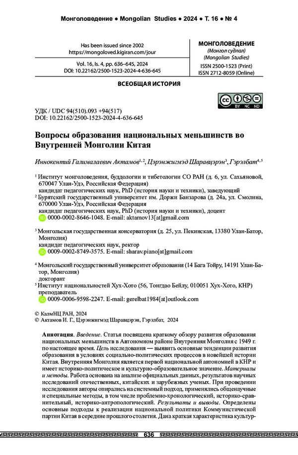 Статья: Вопросы образования национальных меньшинств во Внутренней Монголии Китая