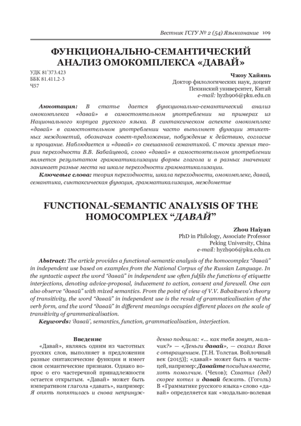 Статья: ФУНКЦИОНАЛЬНО-СЕМАНТИЧЕСКИЙ АНАЛИЗ ОМОКОМПЛЕКСА "ДАВАЙ"
