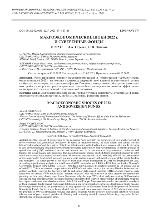 Статья: МАКРОЭКОНОМИЧЕСКИЕ ШОКИ 2022 Г. И СУВЕРЕННЫЕ ФОНДЫ
