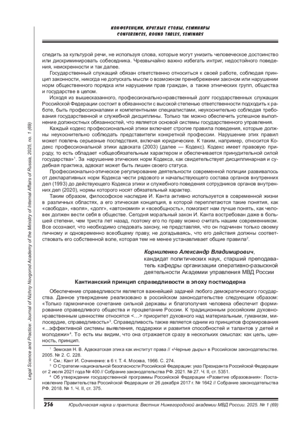 Статья: КАНТИАНСКИЙ ПРИНЦИП СПРАВЕДЛИВОСТИ В ЭПОХУ ПОСТМОДЕРНА