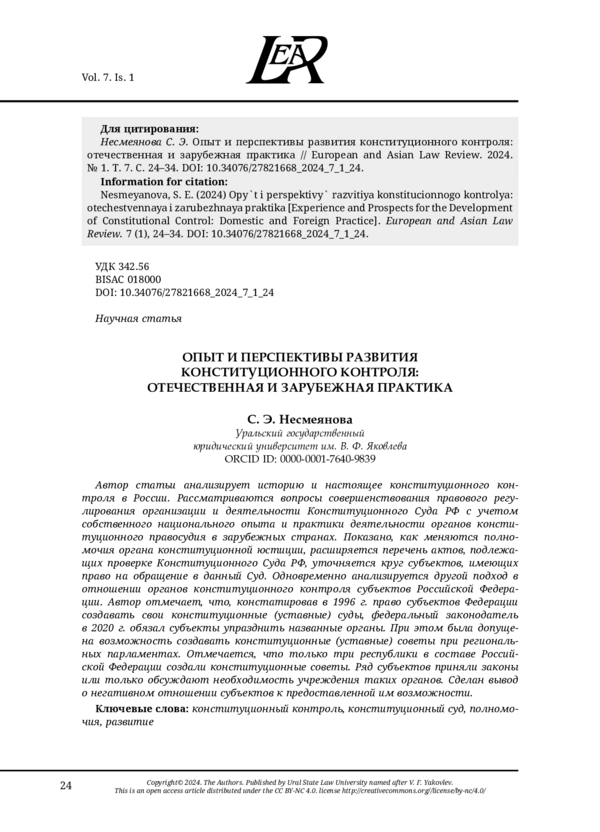 Статья: ОПЫТ И ПЕРСПЕКТИВЫ РАЗВИТИЯ КОНСТИТУЦИОННОГО КОНТРОЛЯ: ОТЕЧЕСТВЕННАЯ И ЗАРУБЕЖНАЯ ПРАКТИКА