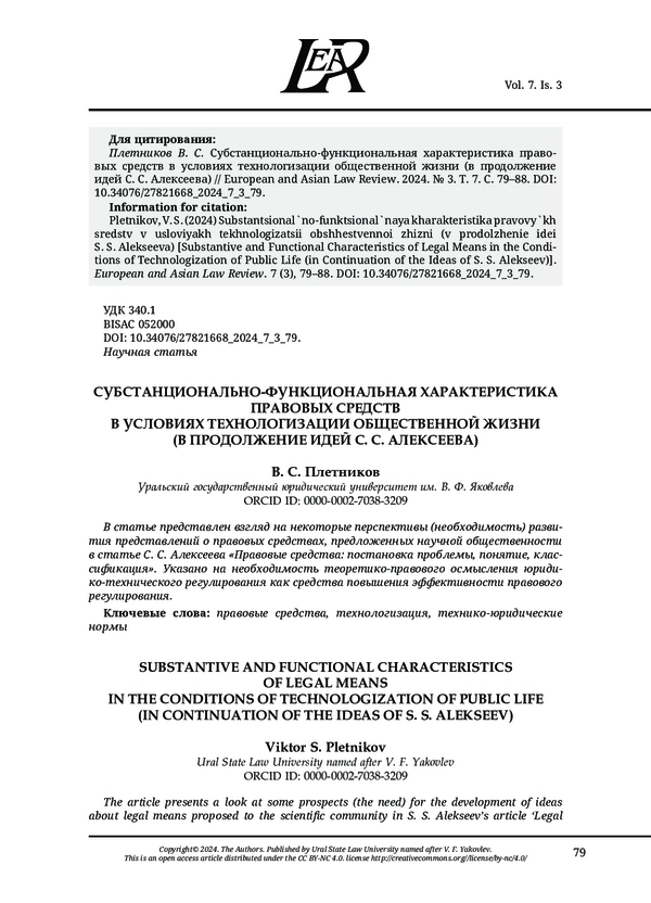 Статья: СУБСТАНЦИОНАЛЬНО-ФУНКЦИОНАЛЬНАЯ ХАРАКТЕРИСТИКА ПРАВОВЫХ СРЕДСТВ В УСЛОВИЯХ ТЕХНОЛОГИЗАЦИИ ОБЩЕСТВЕННОЙ ЖИЗНИ (В ПРОДОЛЖЕНИЕ ИДЕЙ С.С. АЛЕКСЕЕВА)