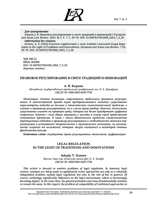 Статья: ПРАВОВОЕ РЕГУЛИРОВАНИЕ В СВЕТЕ ТРАДИЦИЙ И ИННОВАЦИЙ
