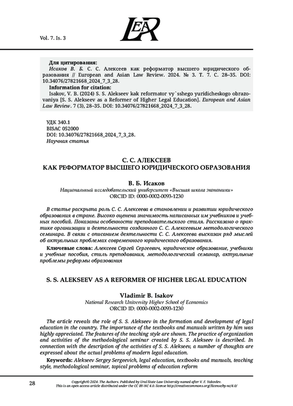 Статья: С. С. АЛЕКСЕЕВ КАК РЕФОРМАТОР ВЫСШЕГО ЮРИДИЧЕСКОГО ОБРАЗОВАНИЯ