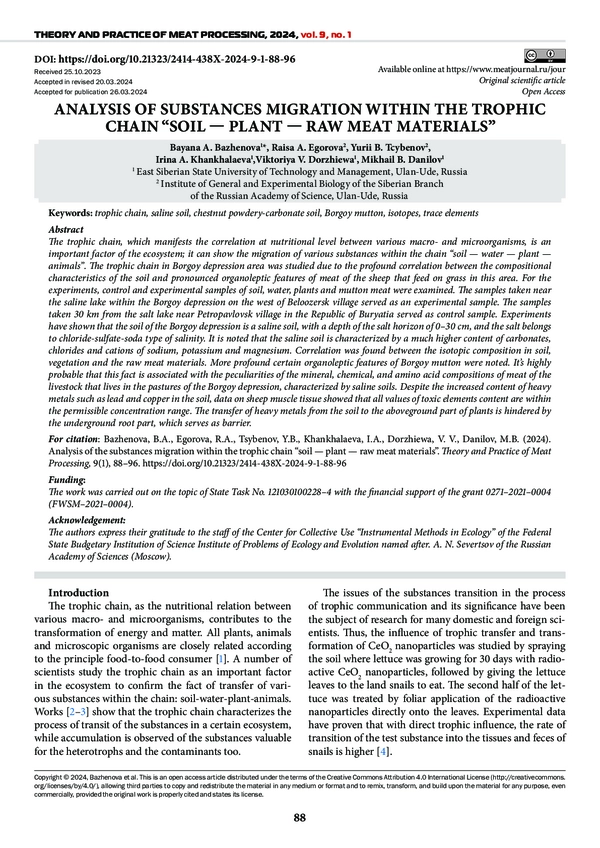Статья: АНАЛИЗ МИГРАЦИИ ВЕЩЕСТВ В ТРОФИЧЕСКОЙ ЦЕПИ “ПОЧВА — РАСТЕНИЯ — МЯСНОЕ СЫРЬЕ”
