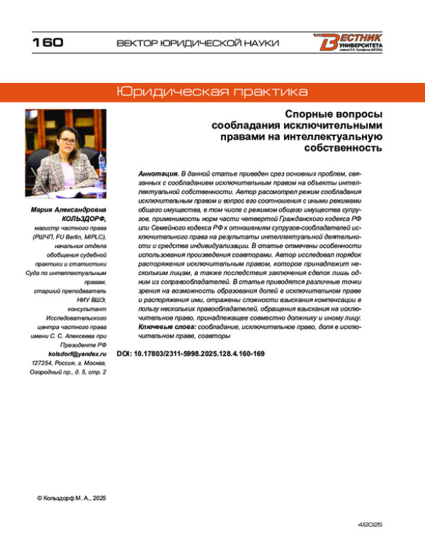 Статья: Спорные вопросы сообладания исключительными правами на интеллектуальную собственность