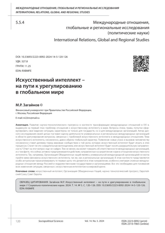 Статья: ИСКУССТВЕННЫЙ ИНТЕЛЛЕКТ -НА ПУТИ К УРЕГУЛИРОВАНИЮ В ГЛОБАЛЬНОМ МИРЕ