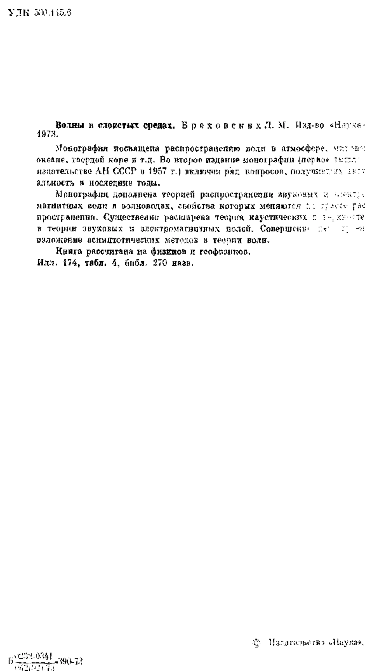 Монография посвящена распространению волн в атмосфере, океане, твердой коре и т.д. Во второе издание монографии (первое в издательстве АН СССР в 1957 г.) включен ряд вопросов, поступивших в печатность в последние годы.