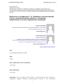 Статья: Животные в метафизике Г. В. Лейбница: онтологический статус, гносеологические аспекты и этические перспективы в оптике современных рецепций