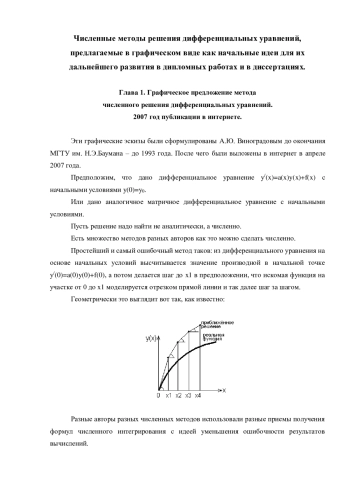 Численные методы решения дифференциальных уравнений, предлагаемые в графическом виде как начальные идеи для их дальнейшего развития в дипломных работах и в диссертациях.