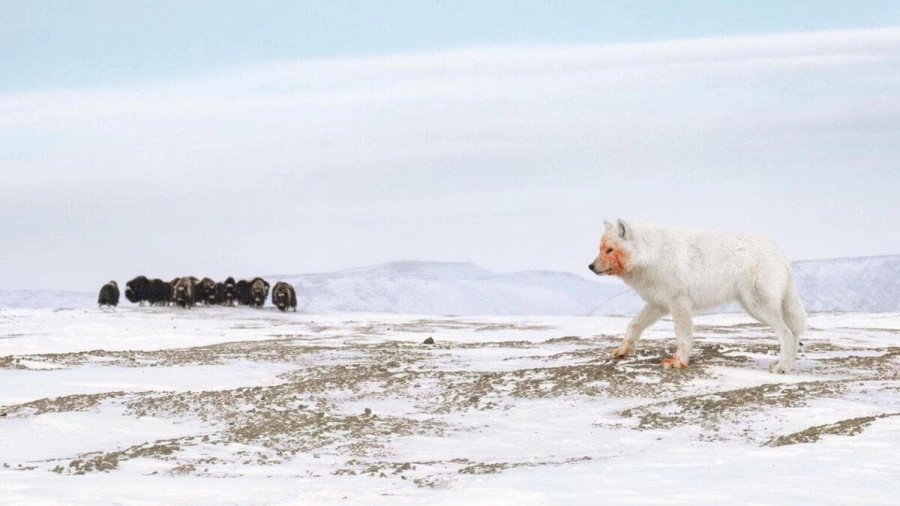 Среди работ-победителей — драматичный портрет арктического волка, столкнувшегося со стадом овцебыков, отдыхающий в расслабленной позе шимпанзе, группа кормящихся фламинго и пронзительный снимок леопарда на фоне мусора и отходов.