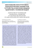 ОБОСНОВАНИЕ КОНСТРУКТИВНОТЕХНОЛОГИЧЕСКИХ ПАРАМЕТРОВ УСТРОЙСТВА И ВНЕСЕНИЯ ЖИДКИХ УДОБРЕНИЙ С ПОЛИВНОЙ ВОДОЙ (2025)
