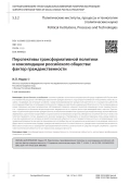 Целью данного исследования политико-правовых аспектов институциональной среды современной России является выявление ресурсов и ингибиторов укрепления гражданственности, под которой понимается интегративное качество социума и индивидов, выступающее условием и средством формирования гражданской идентичности и гражданских доблестей, консолидации общества, легитимации политического порядка и укрепления национальной безопасности. На основании данных серии первичных массовых эмпирических обследований определен мощный генератор размывания основ гражданственности - неуверенность большинства респондентов в защищенности со стороны закона при взаимодействии с властью. Перспективы и ограничения укрепления гражданственности обозначили выявленные серьезные расхождения между коллективным воображаемым, оценочными суждениями и социальными установками респондентов, убежденных в наличии или отсутствии у них политико-правового статуса защищенного законом гражданина. Подтверждена и проиллюстрирована связь между уверенностью или неуверенностью человека в своей политической субъектности и его предрасположенностью к интериоризации таких проявлений гражданства как чувство принадлежности (со)обществу, институциональное и межличностное доверие, лояльность общественно-политическому порядку, гражданская компетентность и ответственность, гражданская и политическая активность. Обоснована актуальность проведения трансформативной политики, целеполагание и средства которой сопряжены с укреплением политической субъектности как первоосновы гражданственности.