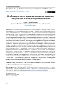 В условиях кризиса либерально-демократической модели, во всех странах Центральной Азии, включая Киргизию, которая в течении долгого времени демонстрировала успехи в процессе демократического транзита, укрепляются авторитарные тенденции. Целью статьи является анализ содержания и характера политических процессов в странах Центральной Азии на современном этапе. На основе метода сравнительно анализа выделены общие и отличительные черты в политических режимах стран региона. Страны Центральной Азии сгруппированы по принципу повторяющихся тенденций во внутриполитических процессах. В странах Центральной Азии наиболее уязвимыми перед «цветными революциями» являются Киргизия и Таджикистан. Вероятность такого сценария, чреватого политической нестабильностью, побуждает одних политических лидеров стран региона (Казахстан, Узбекистан) проводить реформы и конструировать такой политический режим, который более или менее пропорционального отражает экономическую реальность и социальные потребности, а других (Киргизия, Таджикистан) прибегать к методам «закручивания гаек», расчищать пространство от политической оппозиции. В обоих случаях это приводит к укреплению режима личной власти глав государств стран Центральной Азии, а, следовательно, президент по-прежнему будет оставаться на вершине властной иерархии. Однако, как показывают результаты последних президентских выборов в Узбекистане и президентских и парламентских выборов в Казахстане, в этих обществах существует запрос на сильную власть, способную обеспечить общественно-политический порядок и стабильность.