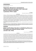 В 1950-е гг. в СССР социокультурные основания функционирования общественных практик и институтов были противоположны таковым в последующие периоды истории СССР и современной России. Кроме того, они противоположны ныне доминирующим тенденциям мирового развития, описанным в работе Зигмунта Баумана «Ретротопия». В культуре того времени слабо выражена массовая ностальгия как поиск «эмоциональной общности с коллективной памятью». Основной определяющий признак 1950-х гг. — рациональность. С этой точки зрения автором рассматриваются нарративы, направленные на коррекцию дискурса «советского», дискредитированного во время Второй мировой войны и политических изменений в советском обществе в конце 1940-х — начале 1950-х гг. Выделяются два типа нарратива — нарратив убеждения и нарратив предвидения, которые транслировались коммерческой рекламой и научно-фантастической литературой. Нарратив предвидения, характерный для культуры 1950-х гг., остался для нее специфическим и дальнейшего развития не получил.