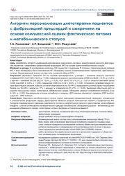 Алгоритм персонализации диетотерапии пациентов с фибрилляцией предсердий и ожирением на основе комплексной оценки фактического питания и метаболического статуса