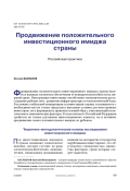 Статья исследует роль государства в формировании и продвижении положительного инвестиционного имиджа страны с акцентом на опыт России. Она подчеркивает важность государственного участия в создании благоприятной среды для инвестиций и активном продвижении инвестиционных возможностей страны.