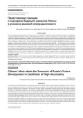 В статье представлены результаты эмпирического исследования представлений российских граждан о возможных сценариях будущего развития страны. Исследование основано на данных, полученных осенью 2023 г. посредством глубинных и формализованных интервью, а также проективных рисуночных тестов среди респондентов трех возрастных групп из различных регионов России. В работе анализируются доминирующие сценарии будущего развития России в трех ключевых направлениях: экономической, культурной и политической сферах. Выделены основные сюжеты будущего, отражающие широкий спектр психологических состояний респондентов — от позитивных до негативных. Особое внимание уделяется влиянию эмоционально-психологических факторов и динамики общественно-политической повестки, поддерживаемой различными медиа, на формирование массовых представлений о будущем. Несмотря на активные меры государства по обеспечению информационной безопасности, в российском информационном пространстве сохраняются идейно-ценностные дисбалансы. Исследование показывает, что транслируемый медиа недружественных стран контент продолжает оказывать воздействие на определенную часть российской аудитории, что требует усиления мер защиты от внешних информационно-психологических угроз и деструктивного влияния на сознание граждан.